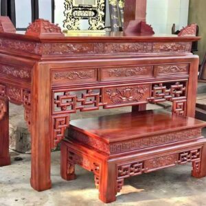 Bộ Bàn Thờ Gỗ Gụ Mẫu Như Ý – Bàn Cơm – Bộ Quần Thư Mai Hóa – Sang Trọng & Tinh Tế