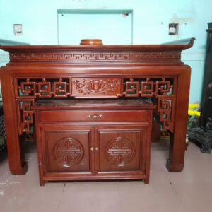 Bàn Thờ 1m27 Đục Như Ý – Đục Sen | Gỗ Hương Đỏ & Gỗ Mít Tây Cao Cấp