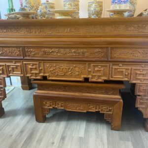 Bộ Bàn Thờ Gỗ Gụ Mẫu Như Ý Dài 1m97 + Bàn Cơm Bộ Quần Thư Mai Hóa