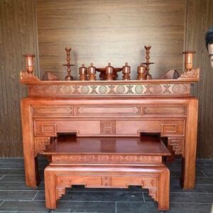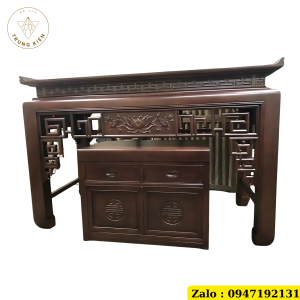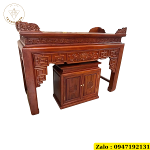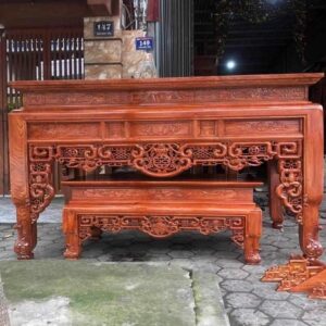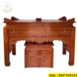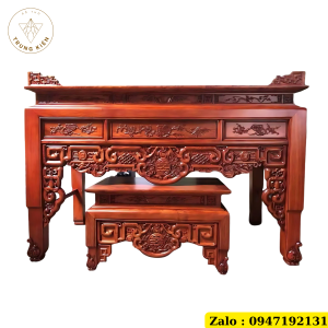 Bộ bàn thờ gỗ hương đá mẫu kim tiền dài 2m17 + bàn cơm 1m27