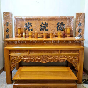 Bộ bàn thờ gỗ mít mẫu sen dài 1m97 + bàn cơm 1m07 + bộ đại tự 1m97