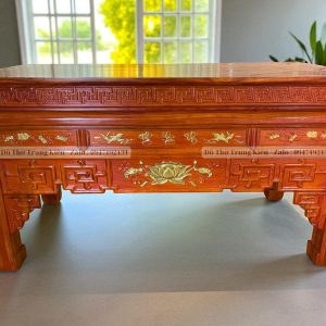 Bàn thờ gỗ hương đỏ đục Sen nền thếp vàng