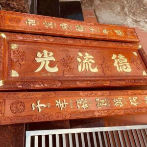 Bộ đại tự mẫu đức lưu quang gỗ hương đá dài 1m97
