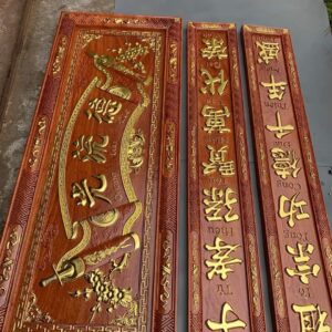 Bộ Đại Tự Lồng Cuốn Thư Gỗ Hương Đỏ 1m97 – Mẫu Đục Tay Tinh Xảo, Sang Trọng Từng Nét