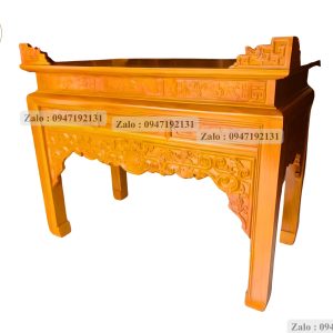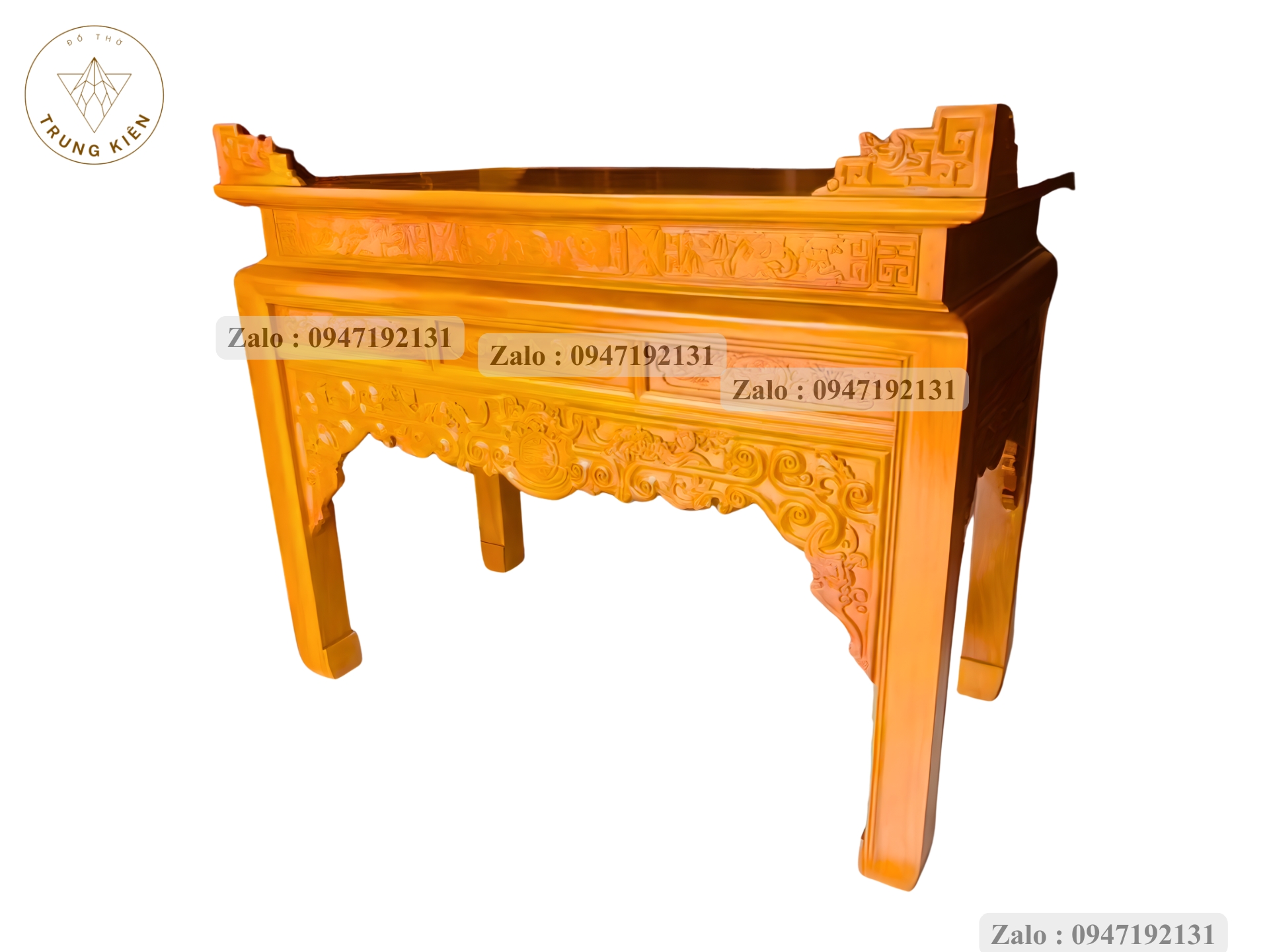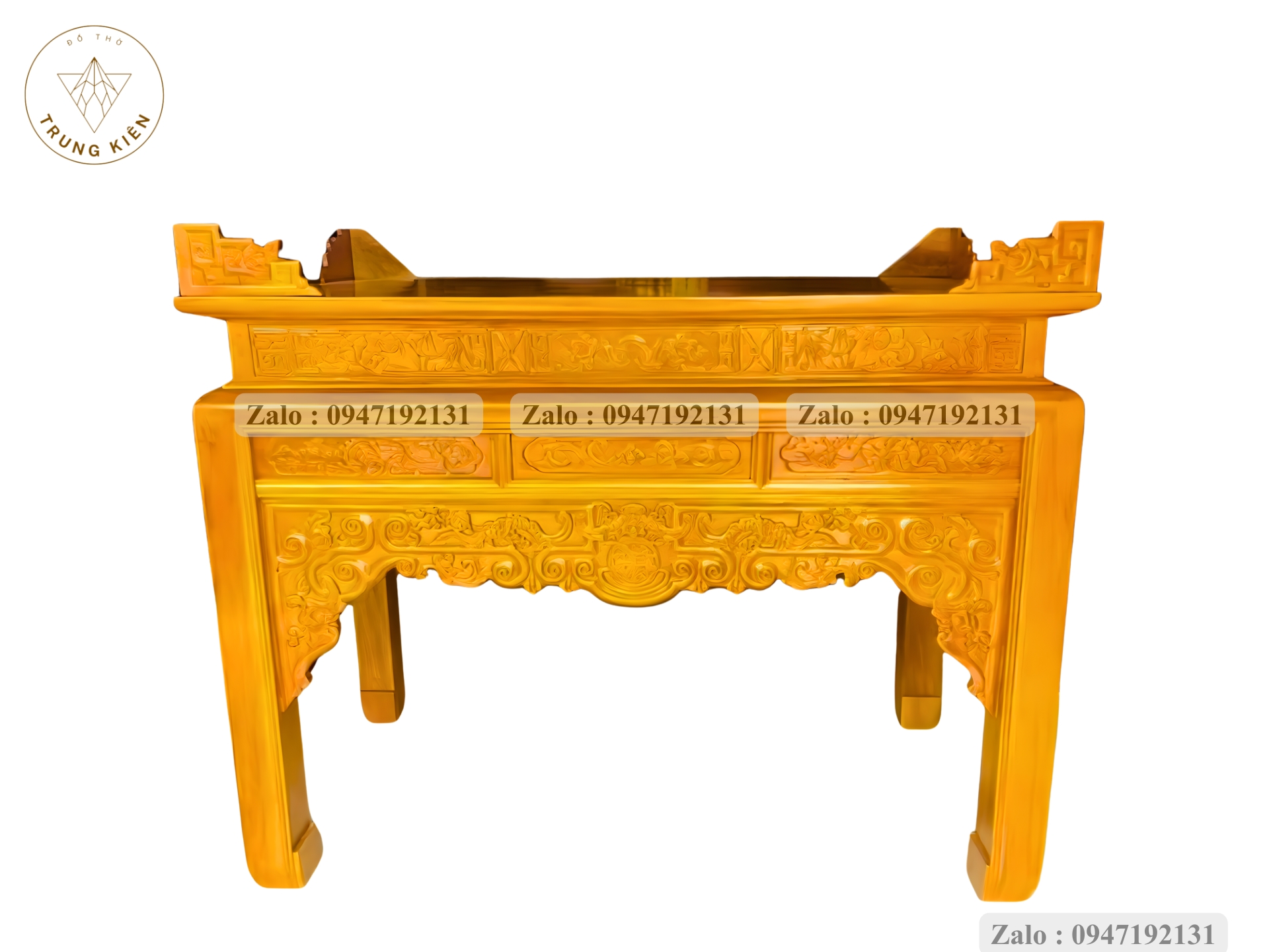 Bàn thờ gia tiên gỗ mít Tây là lựa chọn hàng đầu cho không gian thờ cúng vì độ bền ổn định, ít cong vênh và màu vàng tâm đẹp. Mẫu bàn thờ kích thước 1m55 × sâu 81 × cao 1m17, thiết kế chân 10 chắc chắn, phù hợp mọi phòng thờ từ chung cư đến nhà phố.