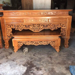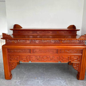 Bàn Thờ Mẫu Sen Lộng Thủng Gỗ Hương Đỏ Dài 1m97 + Bàn Cơm Dài 1m17