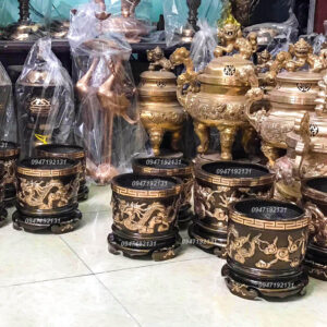 Bát Hương Đúc Nổi Long Phụng Bằng Đồng Đỏ Nguyên Chất
