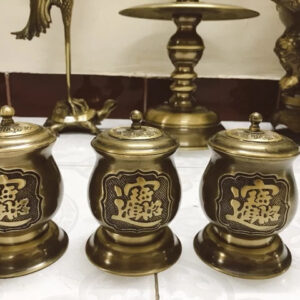 Đặc biệt, bộ 3 choé đồng tạo thế Tam Tài: Thiên – Địa – Nhân, một biểu tượng rất linh thiêng trong phong thủy.