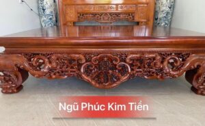 Sập ngồi mẫu ngũ phúc kim tiền là sản phẩm thờ cúng mang ý nghĩa may mắn, phú quý.