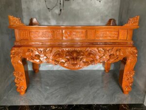 Hoa văn Tứ Linh: Sập thờ được chạm khắc tinh xảo bốn linh vật: Long (Rồng), Lân, Quy (Rùa) và Phụng (Phượng Hoàng), biểu trưng cho sự thịnh vượng, bình an và may mắn.