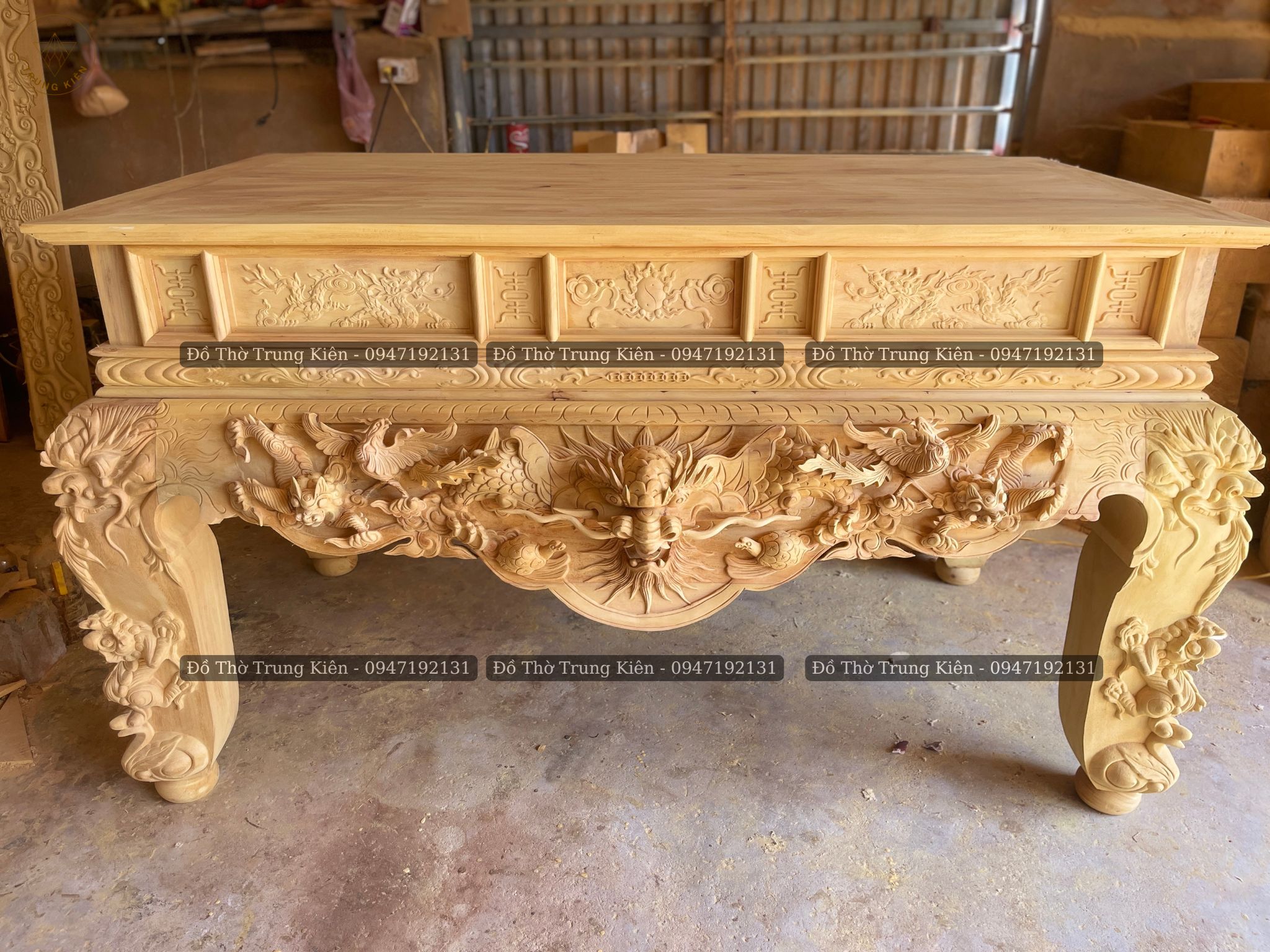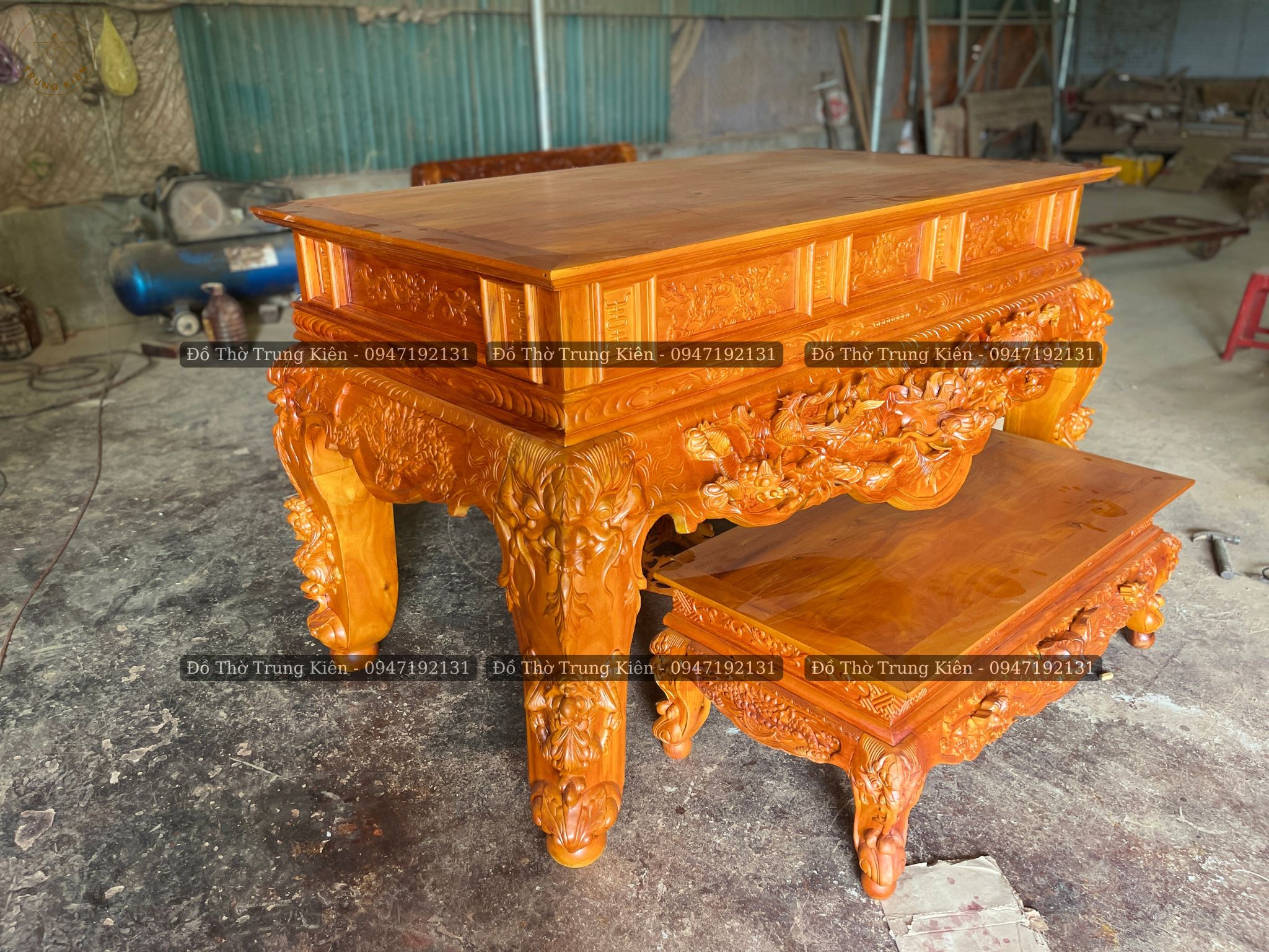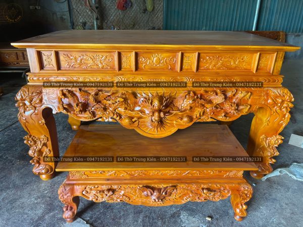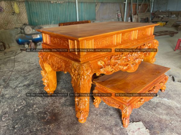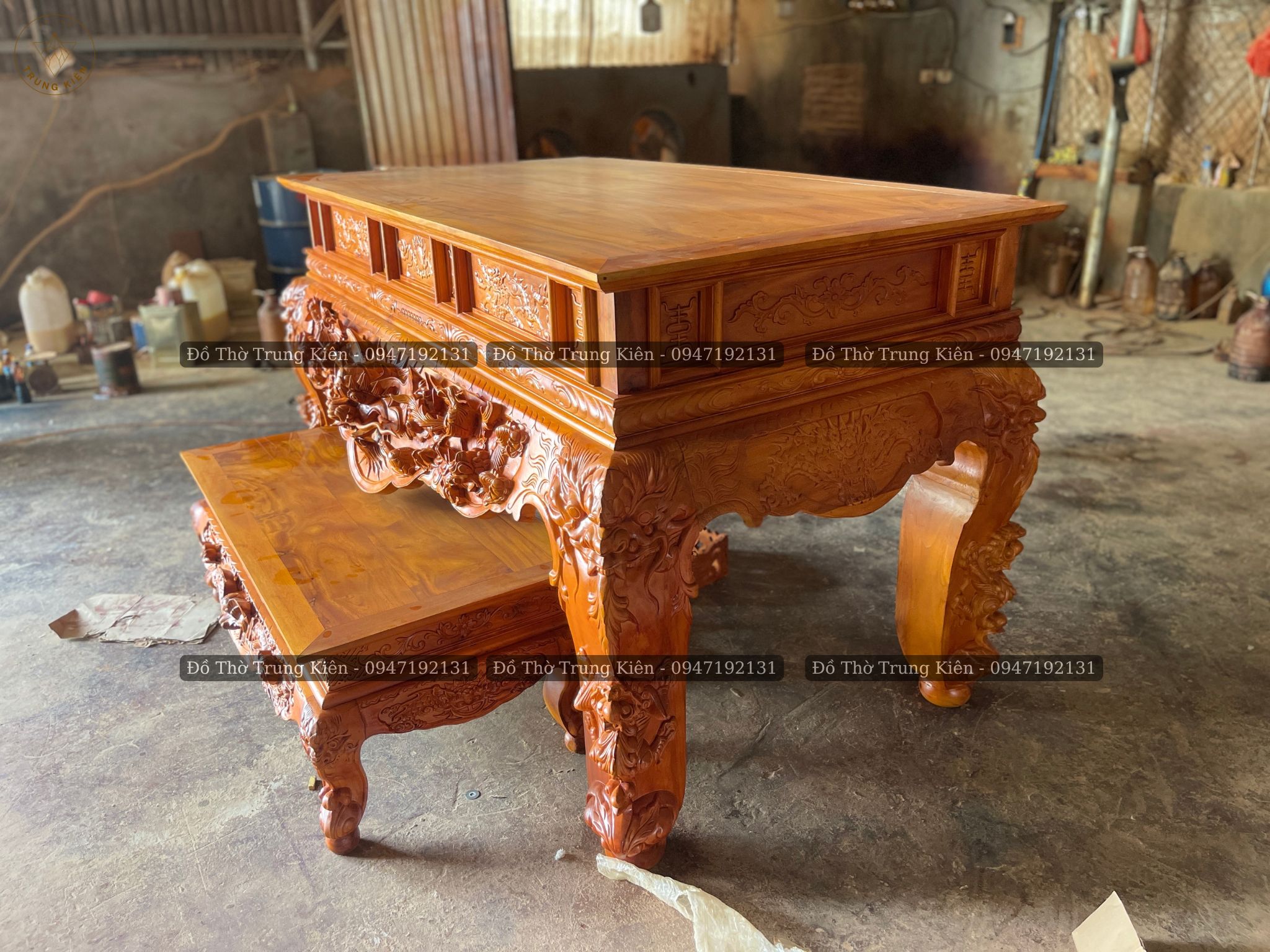 Đi kèm bàn cơm tiện dụng, mẫu sập thờ này không chỉ mang lại sự linh thiêng mà còn tối ưu công năng trong mỗi dịp giỗ chạp, lễ Tết.
