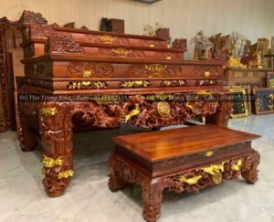 Hoa văn: Chạm tay thủ công 100%, thếp vàng tô điểm tinh tế.