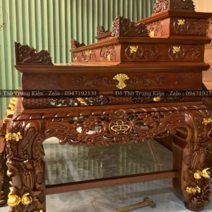 Sập thờ tam cấp gỗ hương đá mẫu mai điểu là sản phẩm đồ thờ cao cấp, được chế tác tỉ mỉ từ loại gỗ hương đá quý hiếm, nổi bật với các đường nét chạm khắc tinh xảo, hoa văn mai điểu uyển chuyển, mềm mại và được thếp vàng sang trọng. Đây là lựa chọn hoàn hảo cho những gia chủ mong muốn không gian thờ cúng trang nghiêm, đẳng cấp.