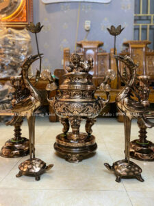 Bộ ngũ sự Hoa Sen Đúc thủ công bằng chất liệu đồng đỏ nguyên chất
