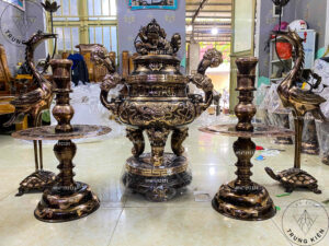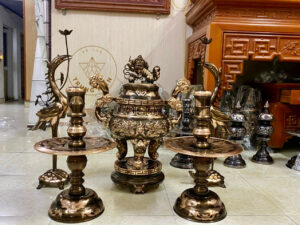 Bộ ngũ sự đồng đỏ luôn là một trong những lựa chọn hàng đầu của các gia đình Việt khi trang trí phòng thờ, bởi không chỉ có giá trị thẩm mỹ cao mà còn mang ý nghĩa tâm linh sâu sắc, thể hiện sự kính trọng và biết ơn đối với tổ tiên. Sau khi tham khảo và trực tiếp trải nghiệm các sản phẩm, Đồ Thờ Trung Kiên xin chia sẻ kỹ hơn về Top 5 bộ ngũ sự đồng đỏ cổ truyền đáng mua nhất năm 2025, giúp bạn dễ dàng lựa chọn sản phẩm phù hợp nhất cho gia đình mình.
